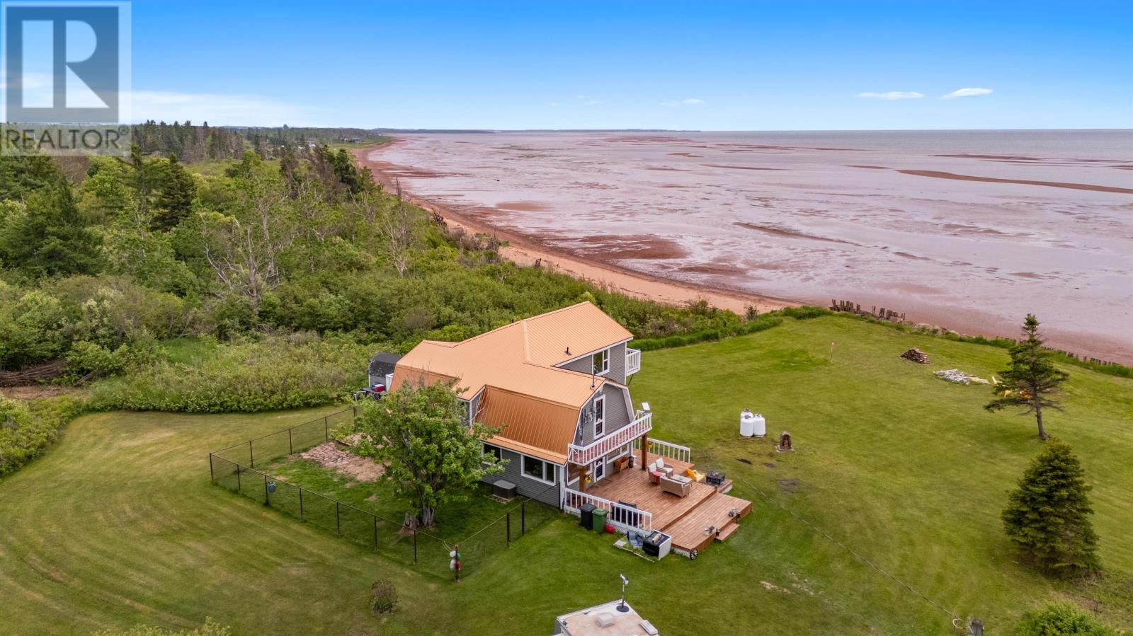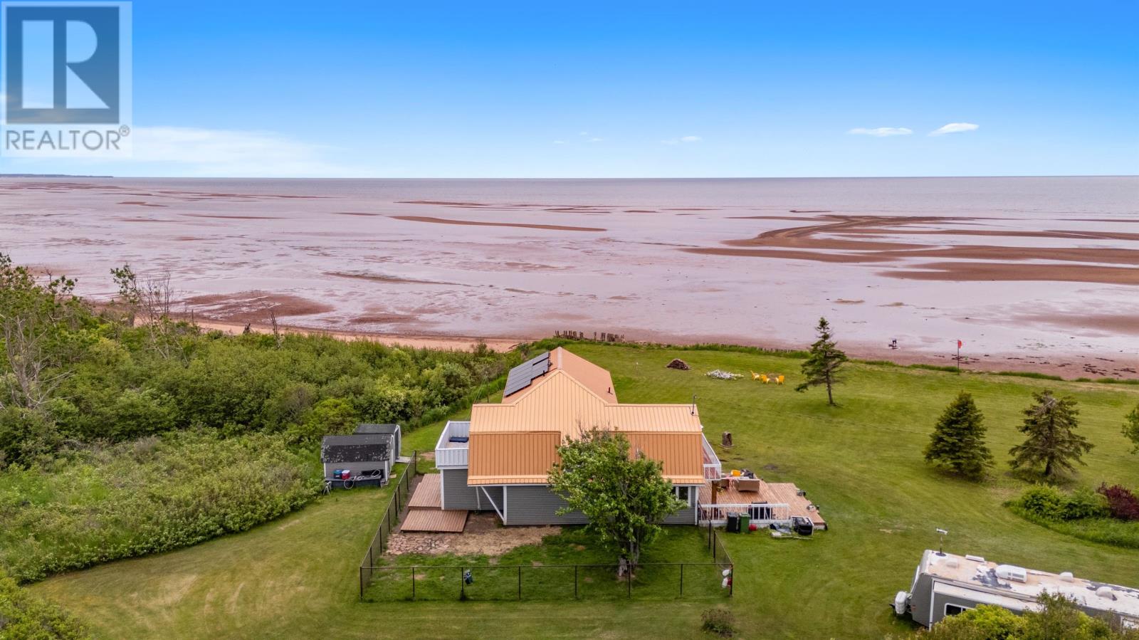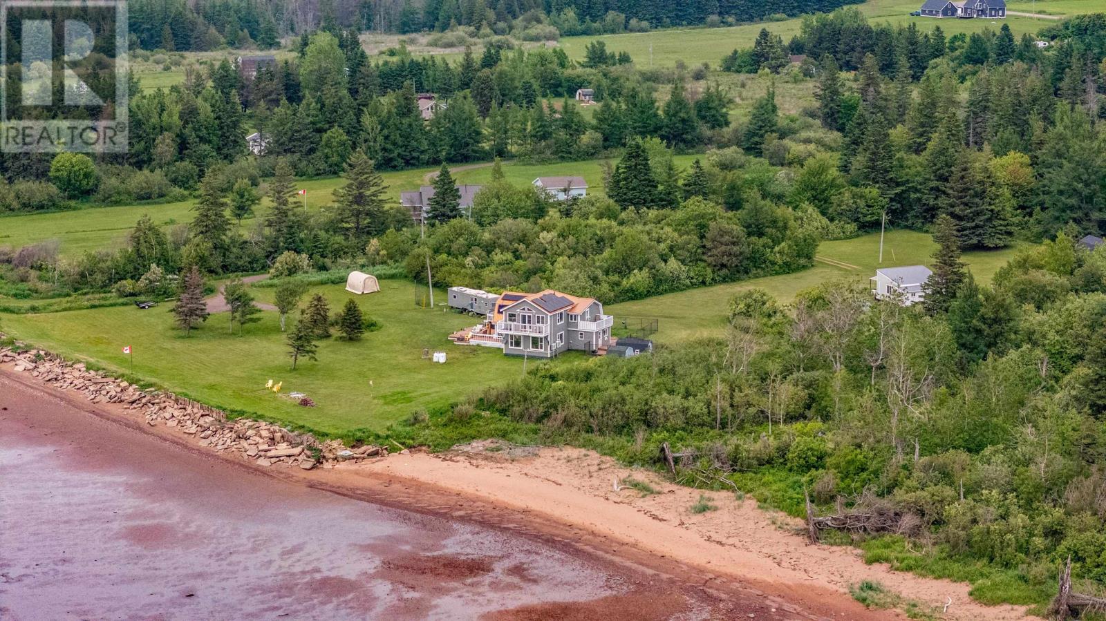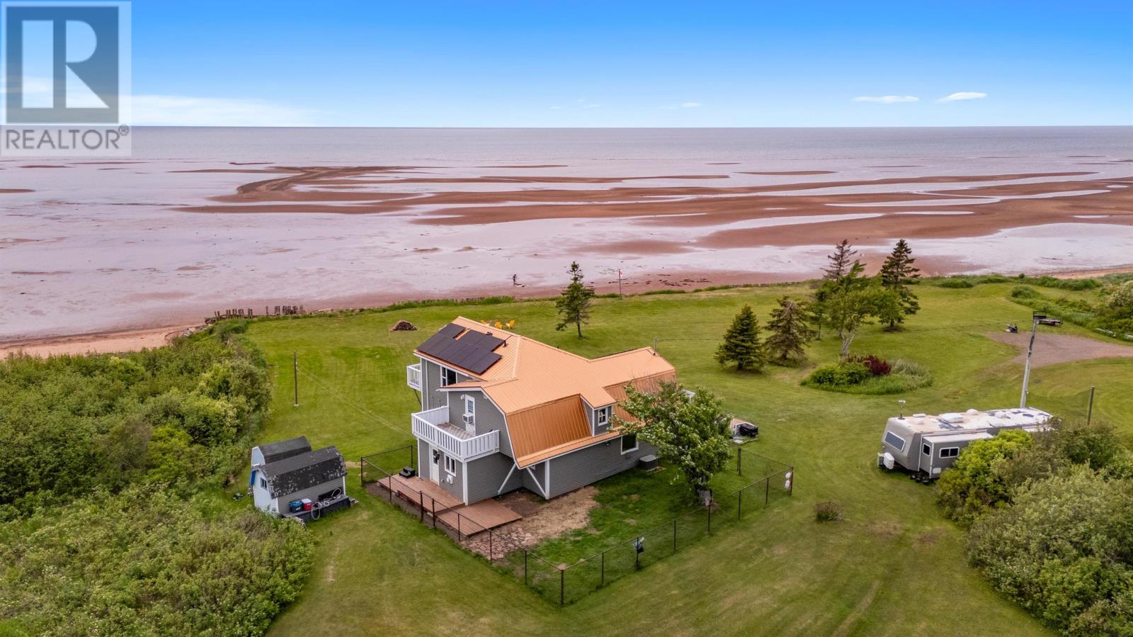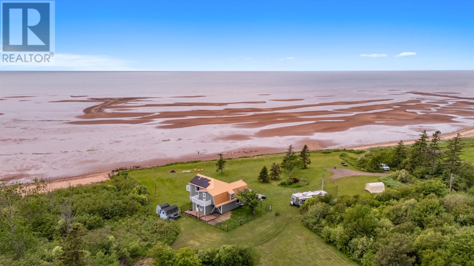 Imagine waking up to the sound of the waves rolling over the sandbars and the sea birds diving for prey. With 220 ft of sandy beachfront you can walk directly onto the Northumberland Strait?s sea floor at low tide and explore the sand bars for hours on end. At high tide swim, kayak, paddle board or kite surf for miles. There will be nothing holding you back to enjoy any salt water activity you can imagine. Located only 45 min to the Confederation Bridge and 20 minutes to the local grocery store. This home boasts two bedrooms on the upper level, with the primary suite featuring a private staircase from the kitchen and a brand new four-piece bathroom. The private balcony off the primary offers stunning, unobstructed views of the strait. The second bedroom is just as impressive, complete with a wraparound mezzanine that overlooks the living room and its own private balcony. On the main level is a third bedroom which is currently being used as the laundry and can easily be converted back. The brand new custom kitchen was thoughtfully designed and locally built using reclaimed wood, with lots of counter space & handmade concrete sink. Some of the renovations include but not limited to - new kitchen, primary bathroom, main bath cabinets, fixtures, appliances, flooring, heat pumps, propane fireplace, solar panels & new metal roof. All of this plus upgraded insulation, electrical & plumbing. All of this and a bonus ?bunkhouse? trailer for summer guests is included. Properties like this may only come along once or twice in your lifetime. This is your chance, act now before it's gone. All measurements deemed correct & should be verified by the purchaser is important. (id:63033)